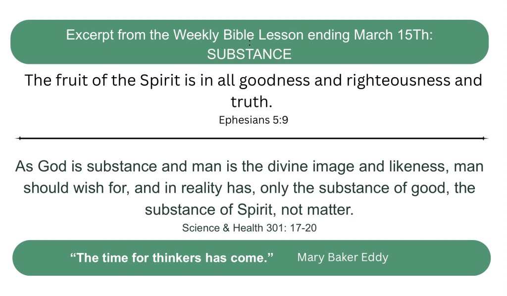 Our Sunday morning service includes a sermon, prayer, and the singing of hymns and a solo. As ordained by Mary Baker Eddy, the Bible, and Science and Health with Key to the Scriptures, are our Pastor. Each weekly Bible Lesson sermon is available for study in advance of the service. The same sermon is delivered in Christian Science churches around the world.